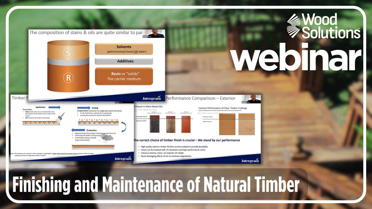 If you design and specify external or internal structural or appearance timber products, and proper timber finishing is part of your brief, then this webinar is a must.