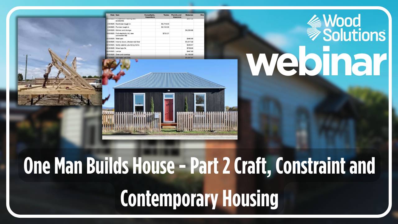 This webinar offers designers, engineers and builders a candid look at timber construction through the lens of lived experience. It highlights what timber enables, where it demands respect, and how thoughtful design decisions can make small-scale, high-quality housing both achievable and repeatable.